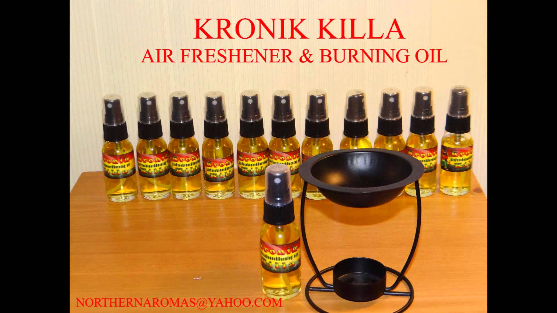 Kronik killa air freshener & burning oil kills all chronic odors. Availible by direct order or i can place it on ebay by request. NorthernAromas@yahoo.com Ca…